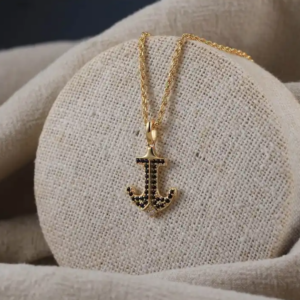 Cubic Zircon Black Anchor Charm With 1.5mm Diamond-Cut Rope Chain 925 Sterling Silver Gold Plated Men Necklace