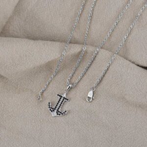 Cubic Zircon Black Anchor Charm With 1.5mm Diamond-Cut Rope Chain 925 Sterling Men Necklace