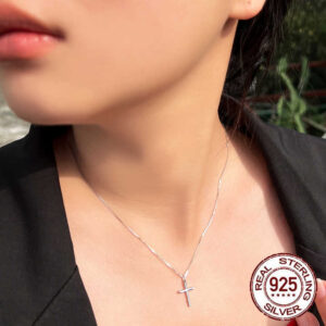 Link Chain Hypoallergenic 925 Sterling Silver Cross Pendant Necklace