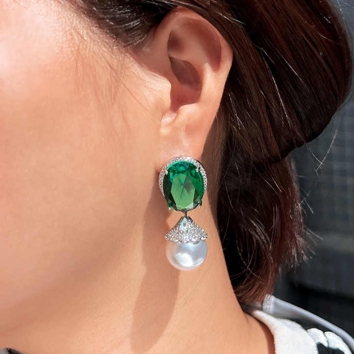- Made of 925 Sterling Silver rhodium plated + zircon stones + synthetic pearl. This jewelry is ergonomically designed to be comfortable to wear and will not irritate your skin or cause it to turn red or itchy.