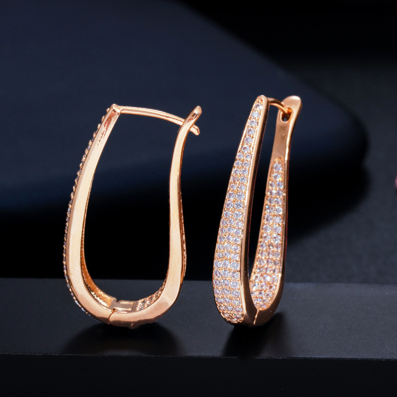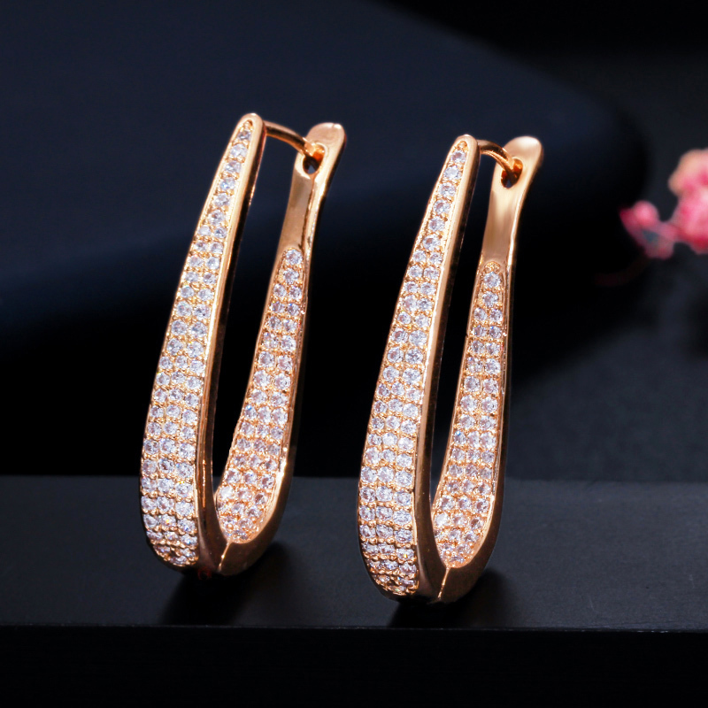 New Fashion Cubic Zirconia Stone White Gold Plated Luxury Hoop Earrings