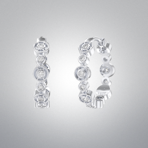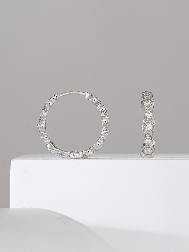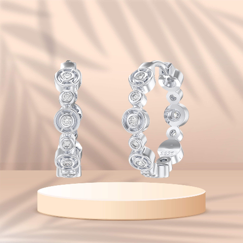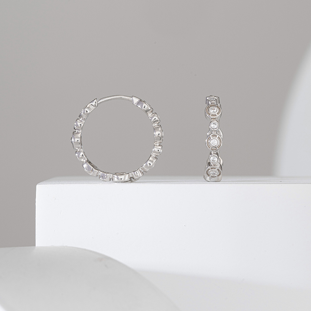 Pameer Store 925 Silver Sparkling Cubic Zirconia Bezel Hoop Earrings