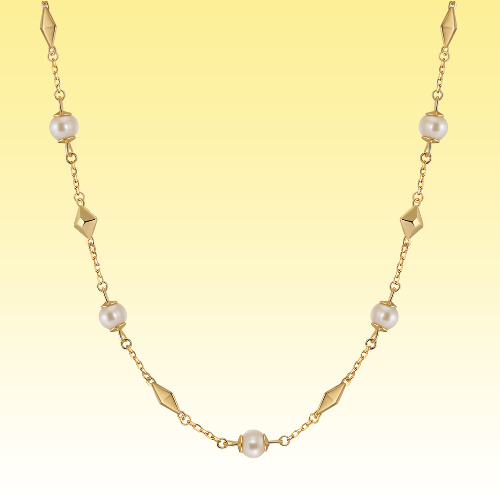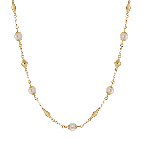 - Length: 40cm + 5cm extender Diamond Bead Size: 7.5mm Pearl Size: 5mm Weight: 9.45grams