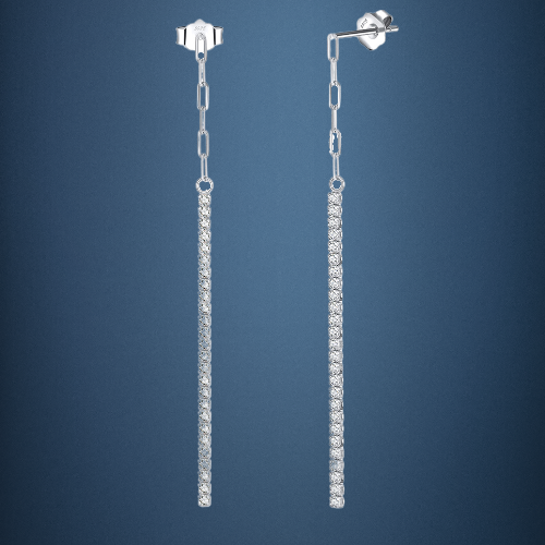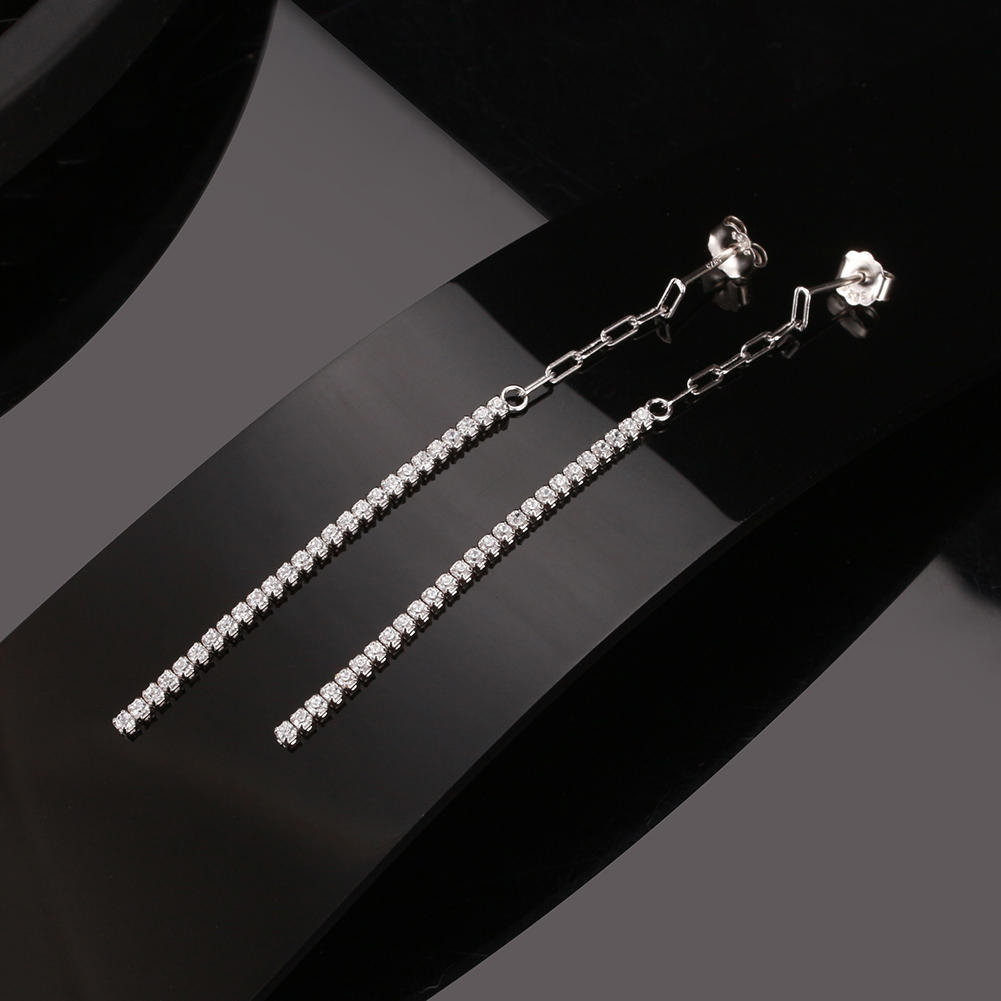 Pameer Store Silver Jewelry 925 Sterling Silver Half Paperclip Chain Half Tennis Drop Earring