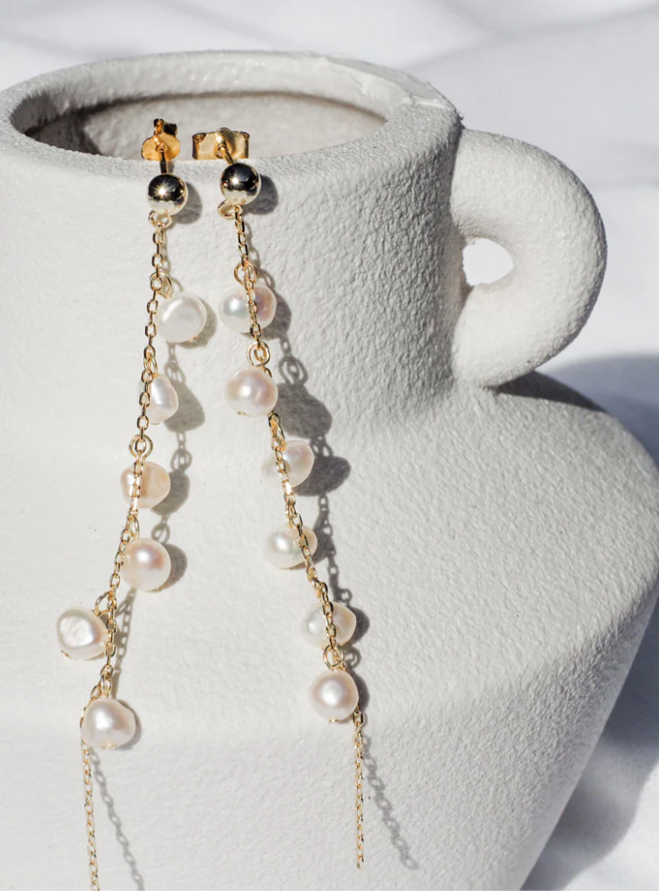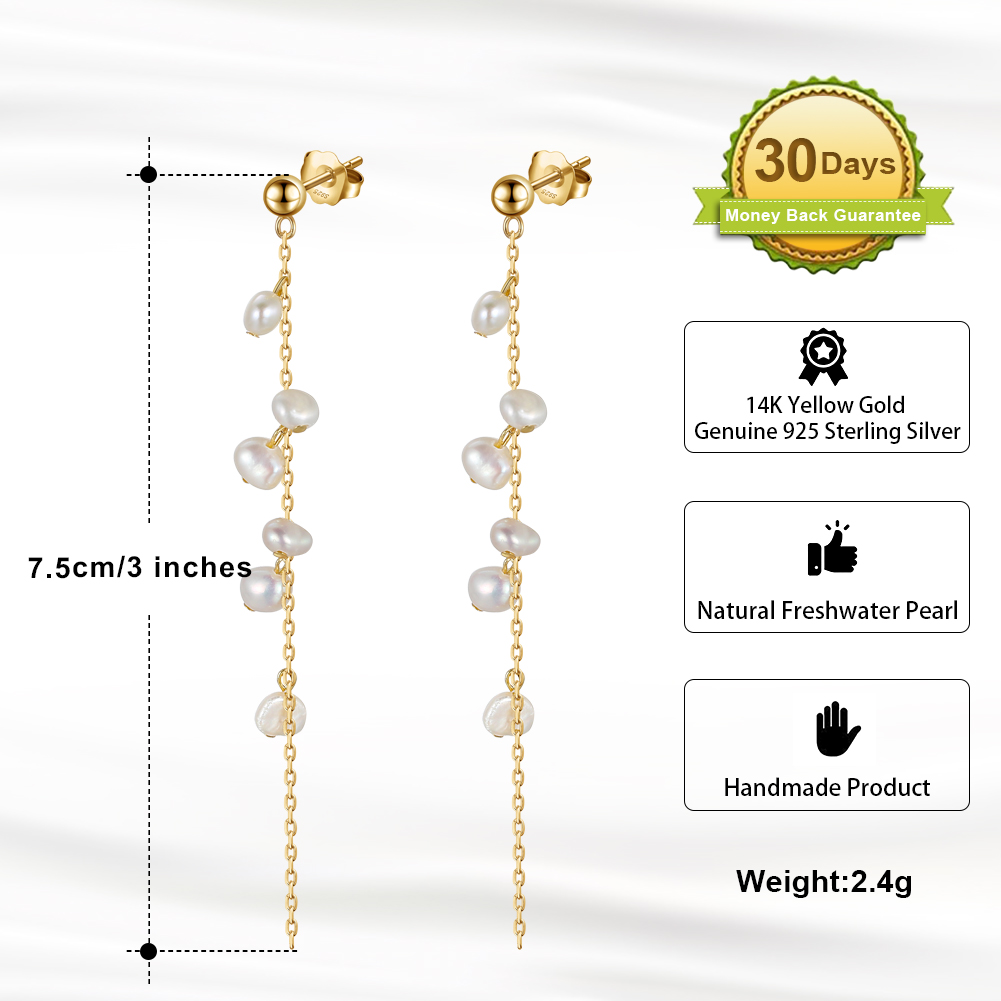 Personality Branch Tassel 925 Sterling Silver 14k Gold Plated Cultured Pearl Earrings