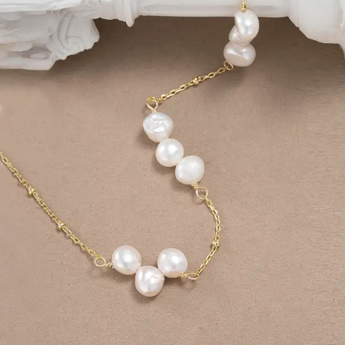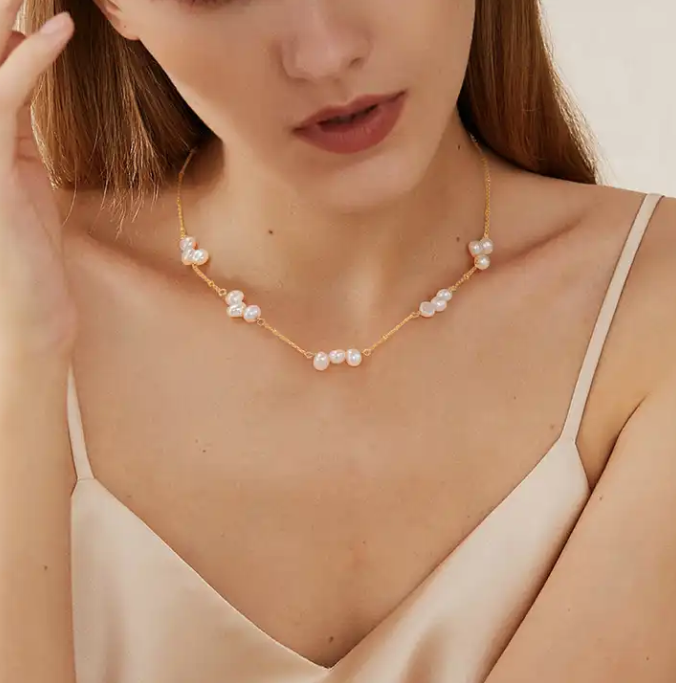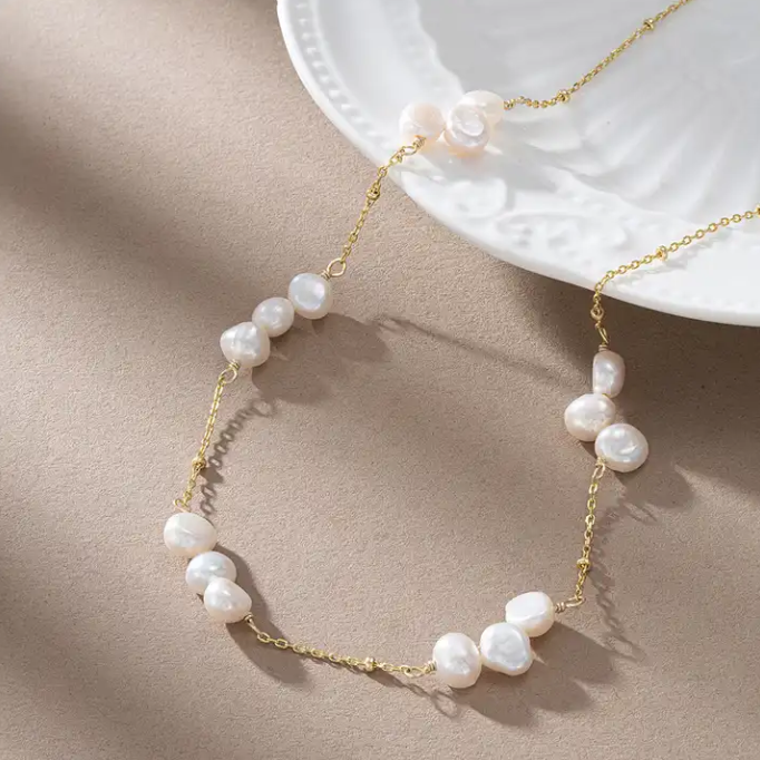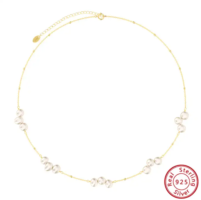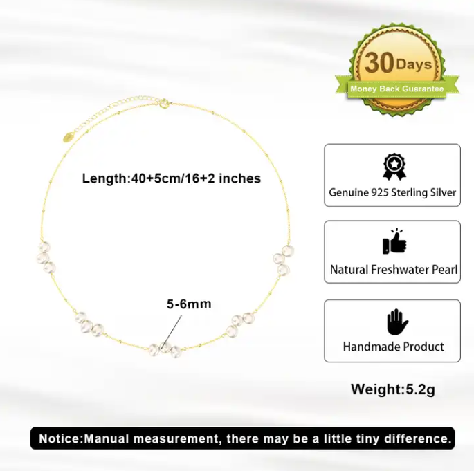 Trendy 14k Gold Plated Sterling Silver Dainty Chain Freshwater Pearl Necklace
